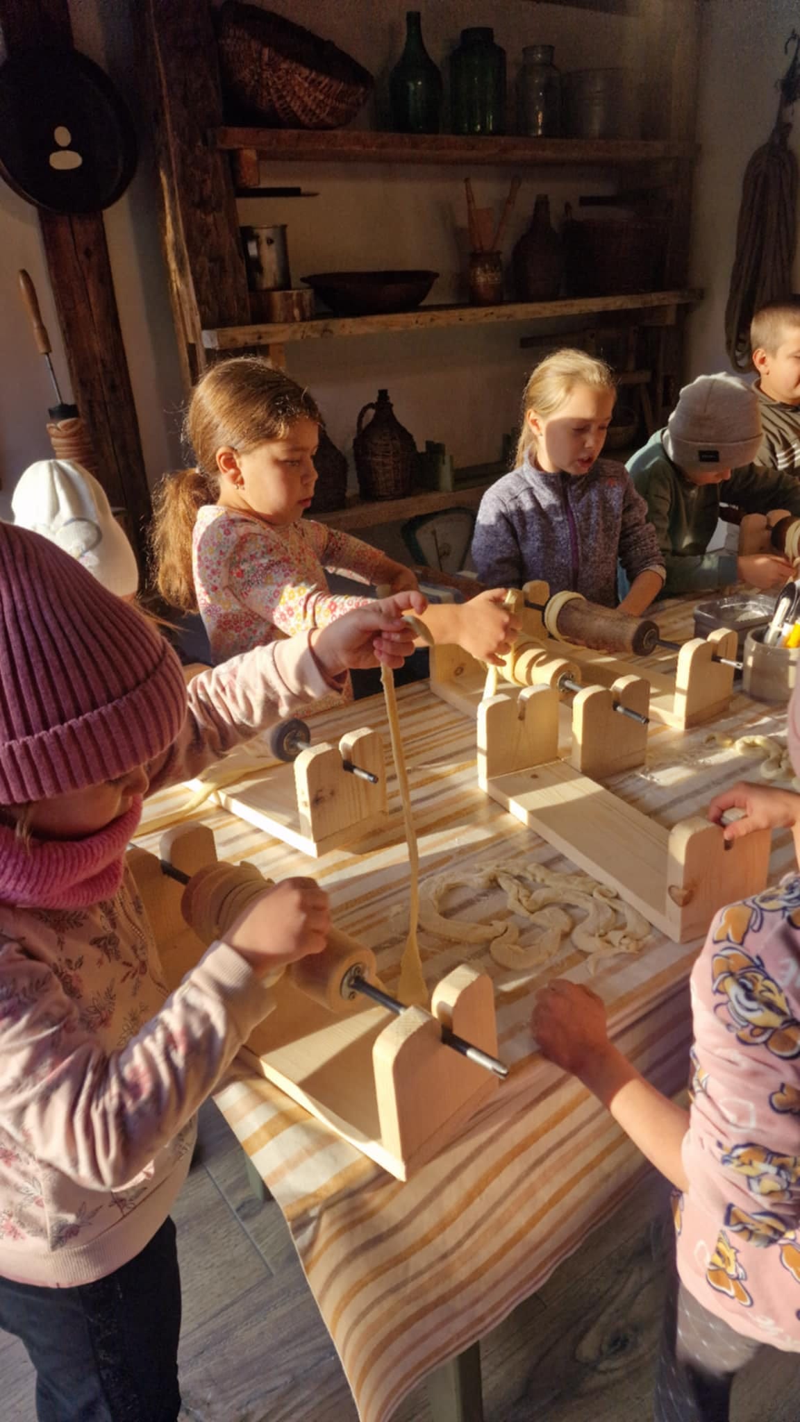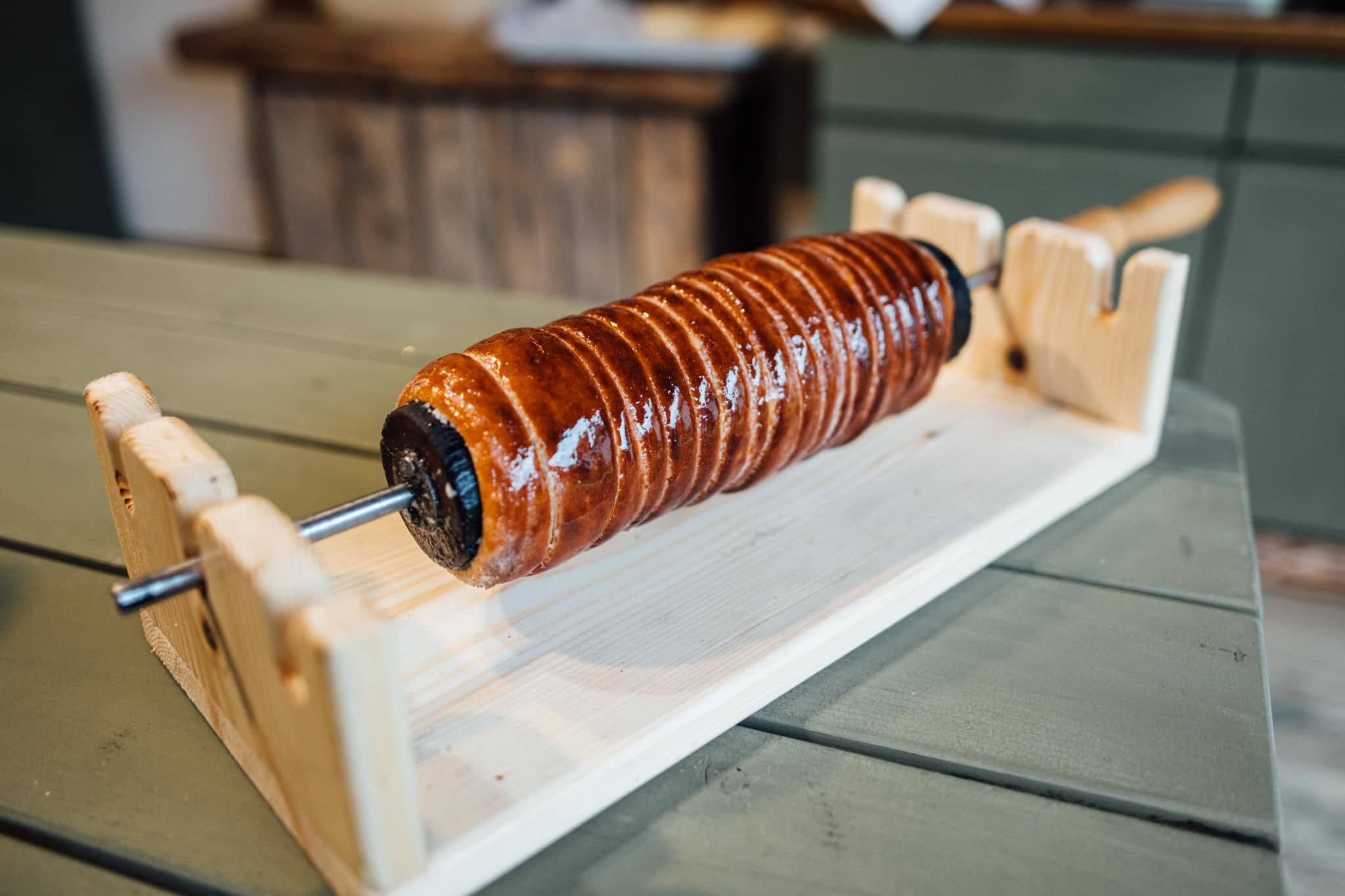 RO: Te invităm în atelierul nostru din Târgu Secuiesc, un spațiu renovat cu drag, unde tradiția se împletește cu confortul. Am pregătit deja aluatul, astfel încât tu să te poți bucura de magia modelării și coacerii propriului kürtőskalács. Atmosfera caldă, decorul rustic și mirosul de zahăr ars fac din acest atelier o experiență de neuitat. La final, poți savura colacul proaspăt și crocant chiar acolo, sau îl poți lua la pachet pentru cei dragi!